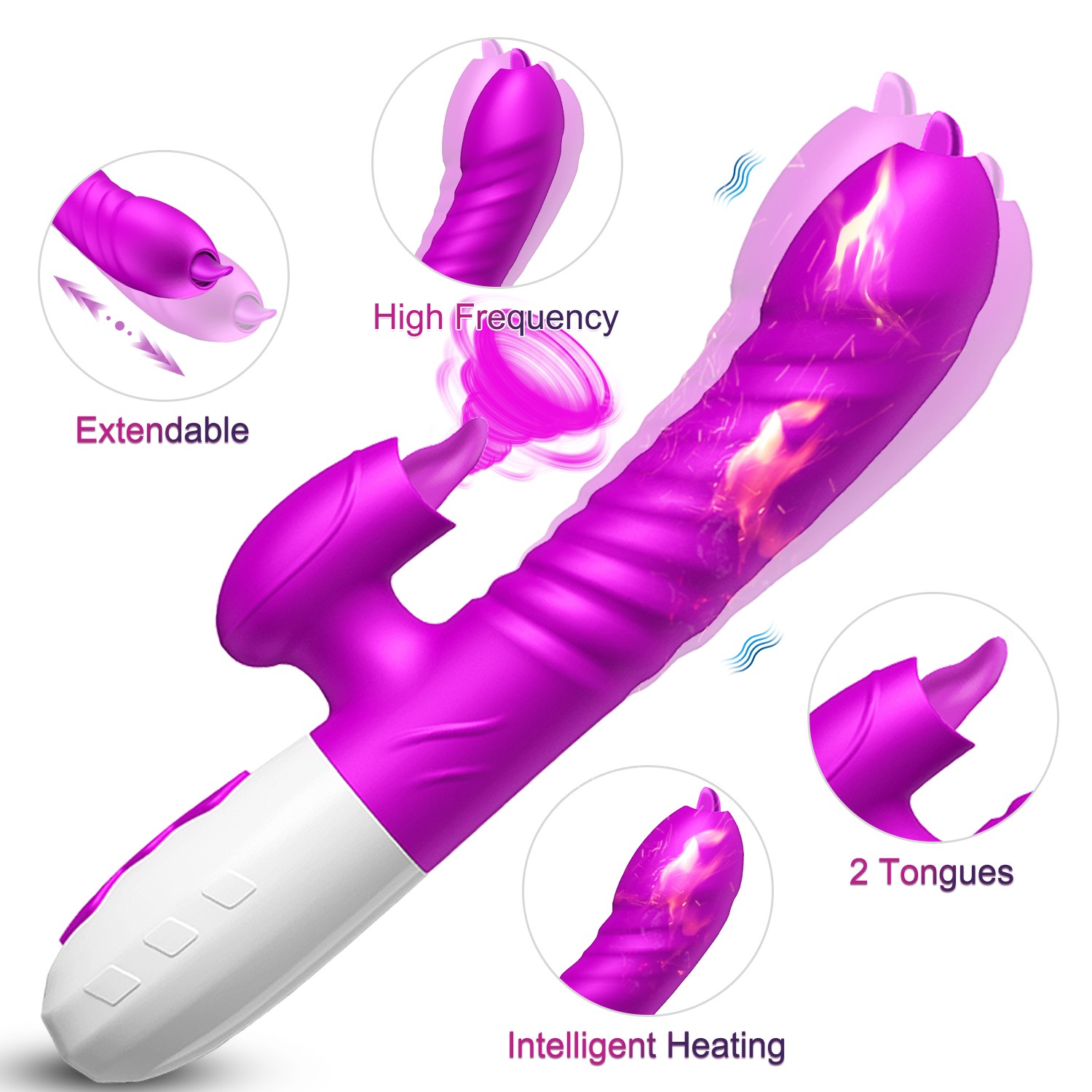 Thrusting G Spot Rabbit Dildo Vibrator, Tongue Licking Rotating Vibrating Women Couples Adult Sex Toys, Female Clitoris Vibrator Wand Stimulator Toy, Dildos Vibrators For Woman Her Pleasure